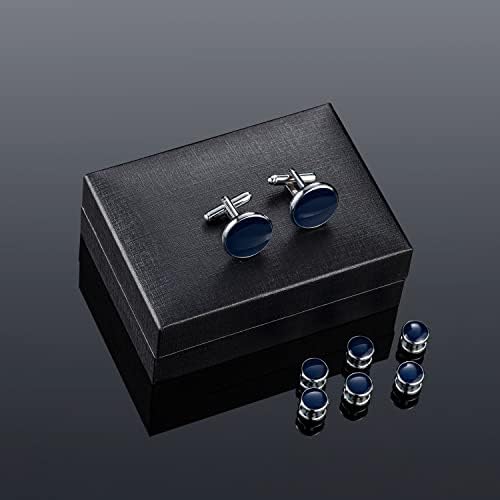 〖HIGH-QUALITY〗Made of high-quality copper, safe and healthy, smooth and comfortable. Each set of Cufflinks and Studs go through an extensive electroplating process, leaving them with a clean, polished look that will retain their color and shine for years to come. The reasonable and strong structure ensures the durability and not fade, rust or scratch. Care Advice: Avoid water and sharp objects. Wipe with cloth after use and put it back in the box to extend its life.