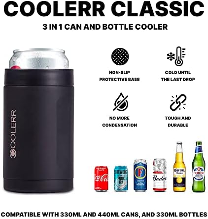 Coolerr Classic | Stainless Steel Can and Bottle Cooler | 330ml Cans | 440ml Cans | 330ml Bottles | Gifts for Him | Gifts | Beer Gifts (Matte Black)