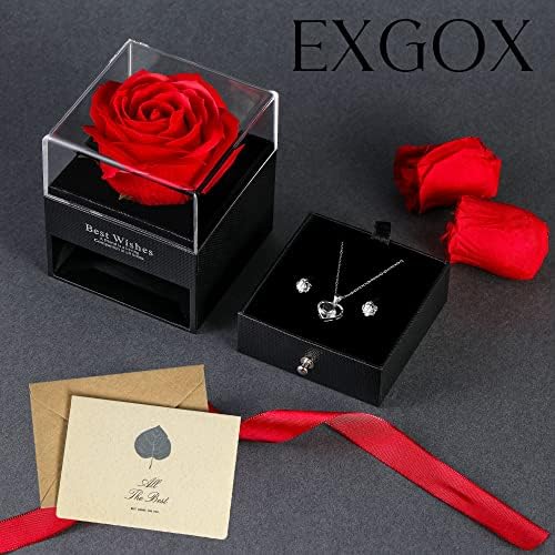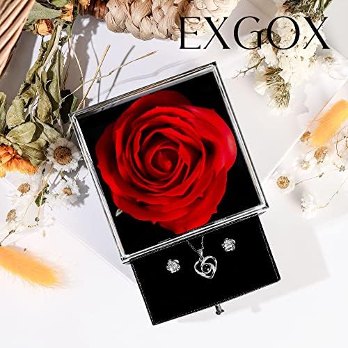 EXGOX Eternal Rose gifts for Women with I Love You 925 Sterling Silver Necklace,Birthday Gifts for Her Forever Preserved Rose Flower Gifts for Women Wife Mum Valentines Day Anniversary
