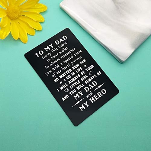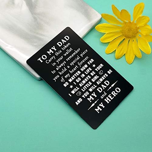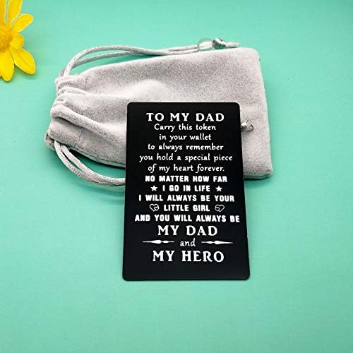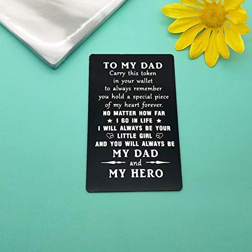 Metal Wallet Insert Card Gift:To My Dad, Carry this token in your wallet to always remember you hold a special piece of my heart forever. No matter how far I go in life, and you will always be my dad and hero Card,It’s a special way to remind how much I love my father. It is a thoughtful sentiment that he can take with him everywhere .
