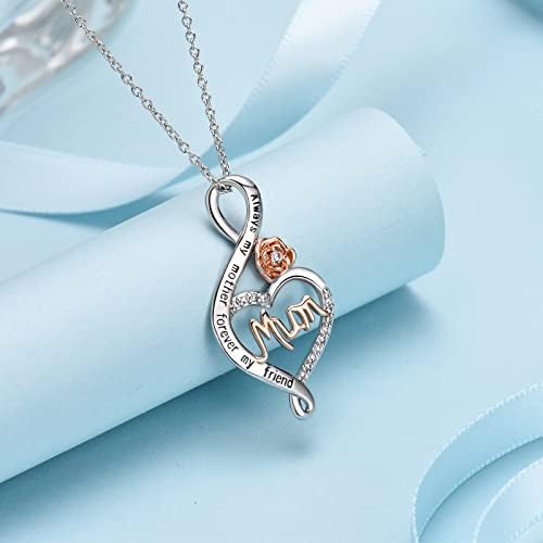 Gifts for Mum/ Nana/ Daughter, S925 Sterling Silver Chain Rose Flower Necklace Jewellery Gifts for Mum Grandma from Daughter Son Grandchildren, Perfect Christmas Mothers Day Birthday Gift with Gift Box