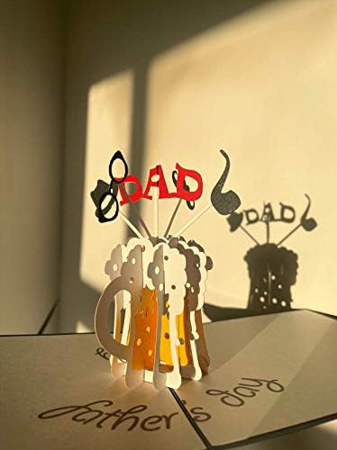 A JOYFUL SURPRISE CARD- Colourful and Joyous Fathers Day Beer Pop-Up 3-D card is a special gift for fathers day. Perfect for a thoughtful yet funny gift which brings joy to the greeting card recipient. Can be given as a token of your love. Delight your dad this fathers day. By making them feel warm and happy by sending them this joyful and funny 3D beer pop up greeting card.
