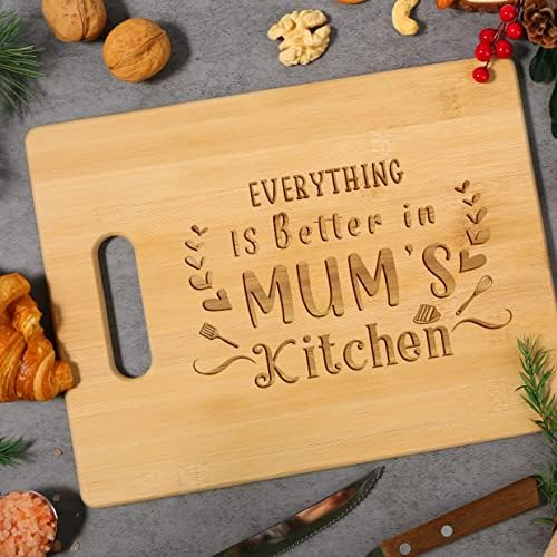 Mothers Day Gifts for Mum – Our bamboo cutting board are carefully engraved with “Everything Is Better in Mum’s Kitchen” to remind her that even if you don’t tell her, you will always and forever thank her and love her. Show her how much she means to you.