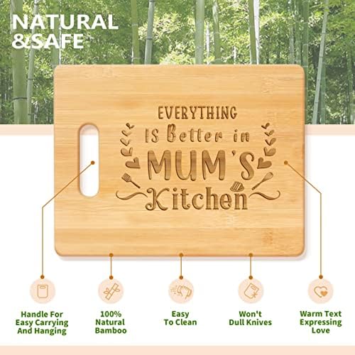 Mothers Day Gifts for Mum, Best Mum Birthday Gifts from Daughter Son – Unique Engraved Bamboo Cutting Board with Warm Saying, Funny Kitchen Presents for Mum Birthday, Mothers Day or Christmas