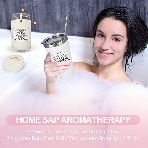 ❤Unforgettable Gift Box: Women’s Birthday Gift Basket contains 4 beautifully wrapped gifts, a 7oz insulated spa tumbler that says “My Favorite Child Give Me This Cup”, a pure Handmade love soap, a soy wax candle and a greeting card. Whether its a gift to celebrate a birthday, mother’s day, anniversary or graduation, gift baskets will make a truly unique and treasured gift.