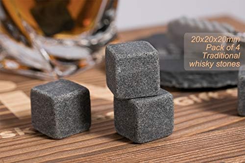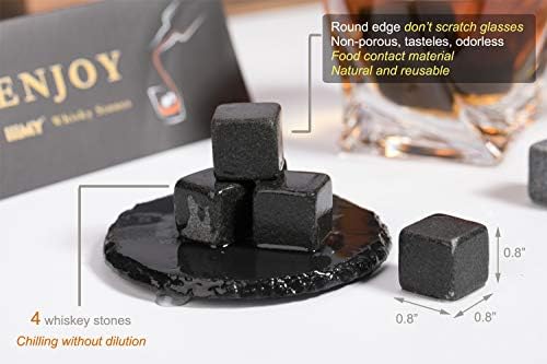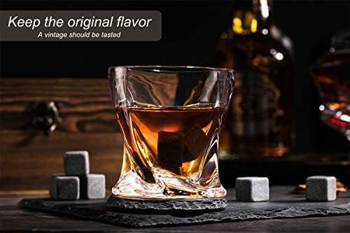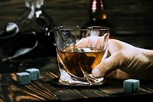 Whiskey Stones and Glass Gift, 4 Whisky Stones + Twist Whisky Rock Glass + Slate Coasters for Whiskey and Scotch, Christmas/Birthday/Father’s Day Gifts/Present for Men/Women